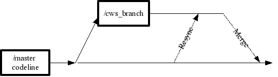 Many of the “repeated merge” problems can be solved before the merge back to the master branch if you were able to bring your copy of the cvs branch up to date of the latest know stable version of your master. For this the resynchronization action (cwsresync) command has been introduced.